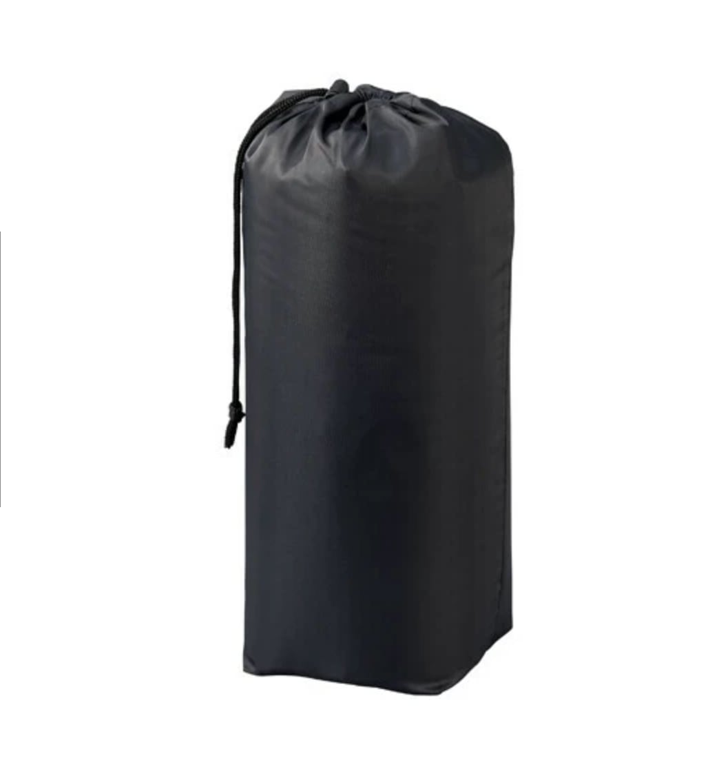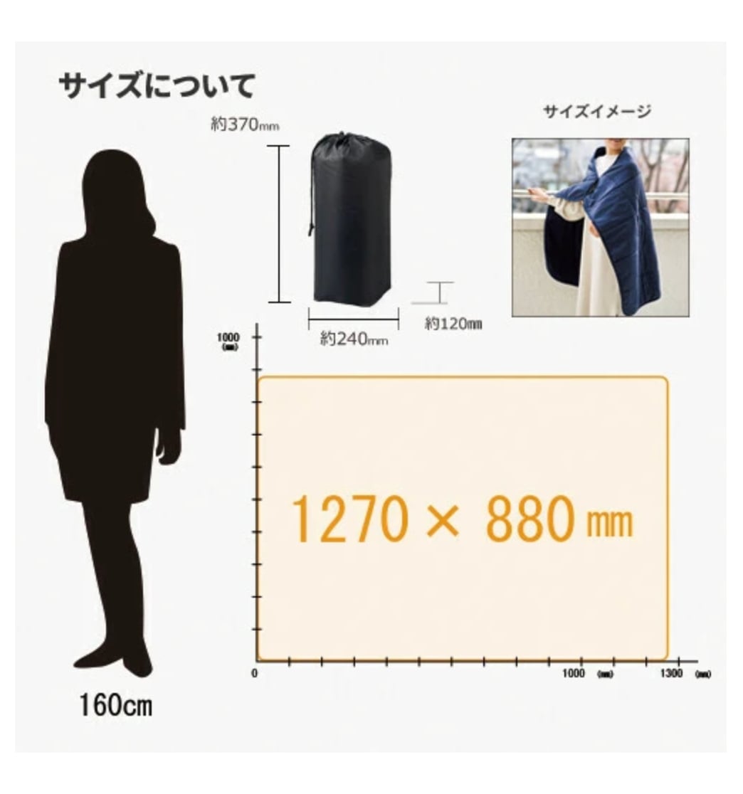 ボタンを留めることで、肩掛けや腰巻きとしても使える大判サイズのブランケットです。表面には滑らかなポリタフタ生地を、裏地には柔らかなフリース生地を使用しています。さらに中綿を挟んだ3層構造で、高い保温性を実現。季節が合わないときには収納できる巾着付き