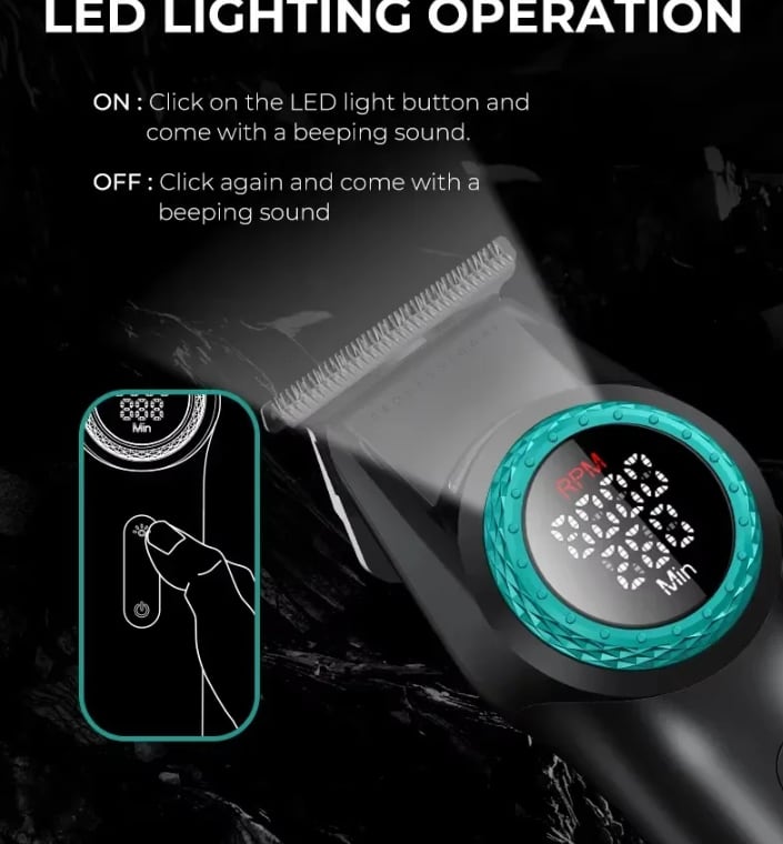 クリッパー・トリマーには電源ボタンのほか、LEDライトのON/OFFボタンがあり刃先を照らすことができます。明るさの足りない場所での施術や、疲れ目で見えにくいと感じたときの手助けとしてご使用ください。