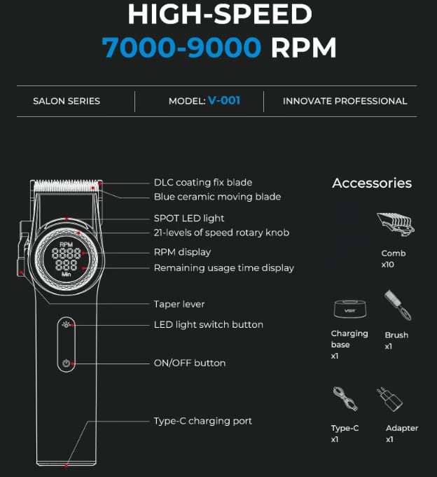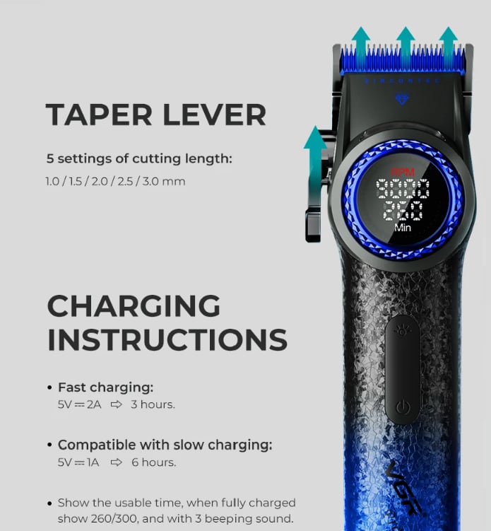 【USB充電】 VGR ボイジャー プロフェッショナルクリッパー充電スタンド付 V-001 限定色サファイアエディション