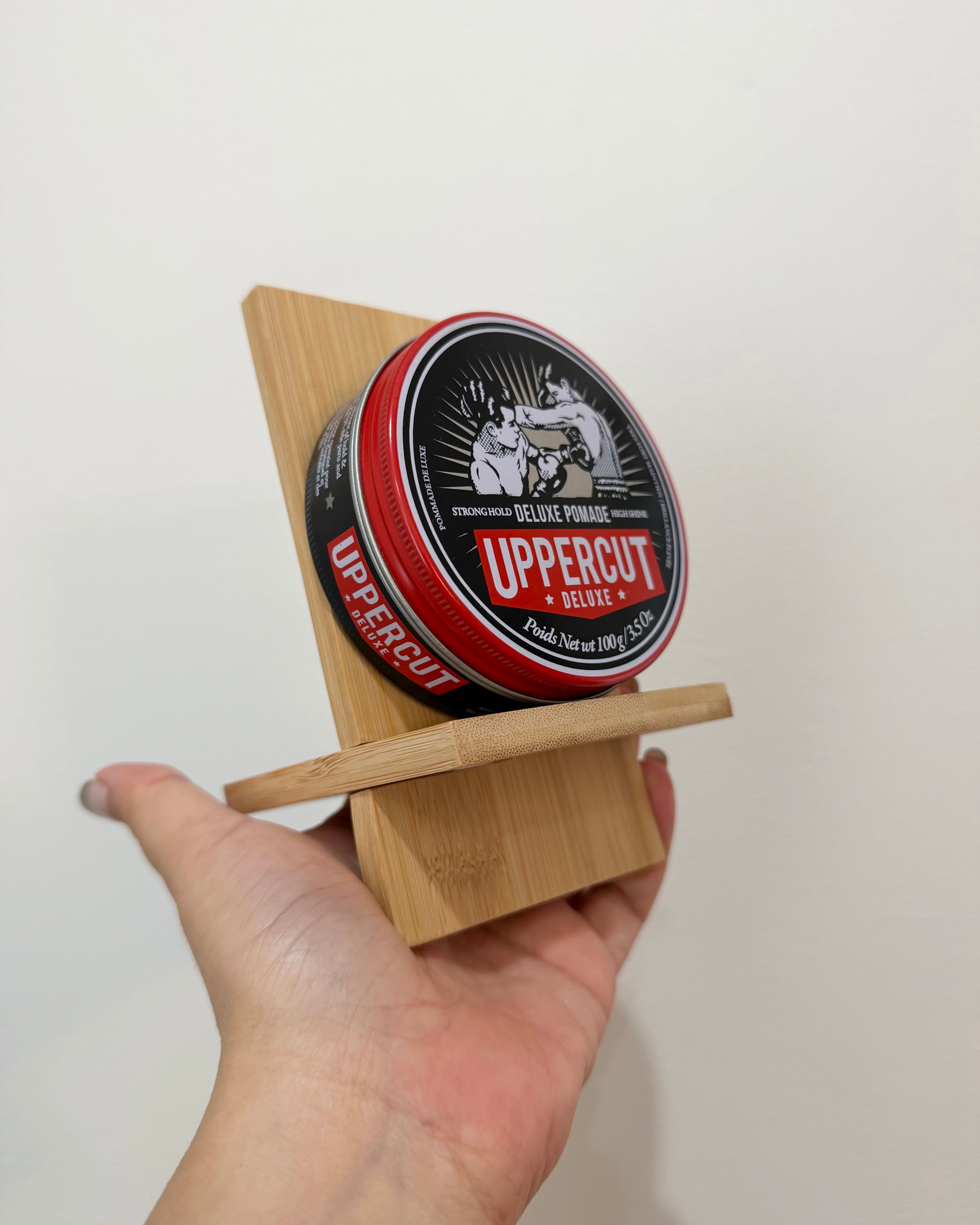 背面の斜めの角度がちょうどよく、せっかくのかっこいいポマードのデザインを前面に出せるように製作しました。