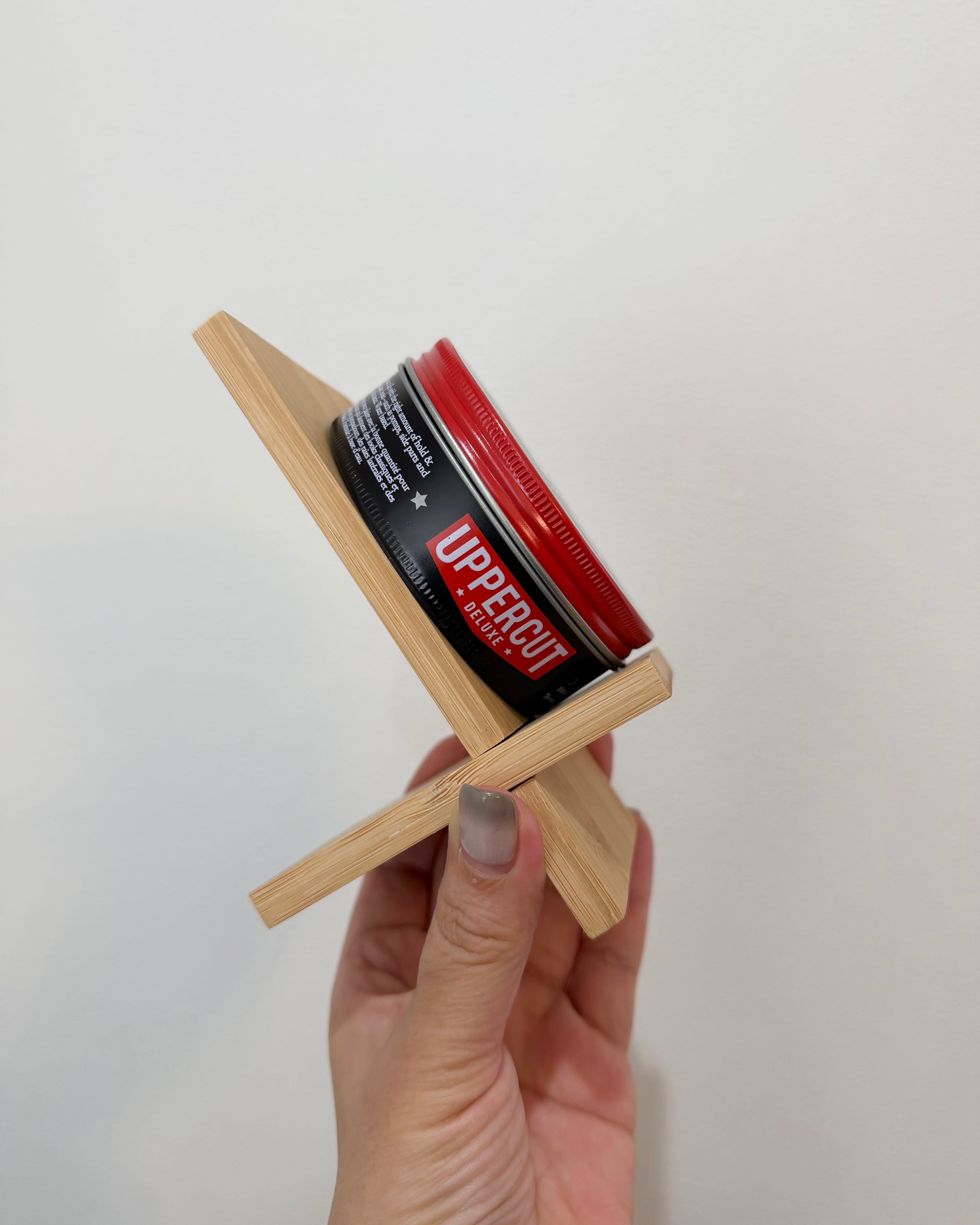 店内で販売用のポマードやジェルを1つずつディスプレイするのにぴったりなスタンドです。