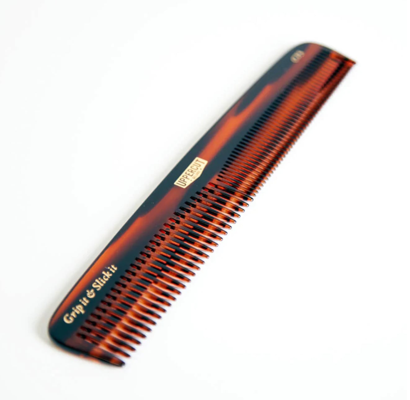 光沢のある伝統的なデザインのTortoise Shellは、高品質の植物性セルロースアセテートから作られており、当社の「Grip it & Slick it」のキャッチフレーズが記されています。CT5 Tortoise Shellコームは、お気に入りのアッパーカットデラックススタイリング剤と一緒に使うことで、さまざまなスタイルが作れます。