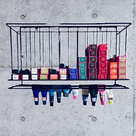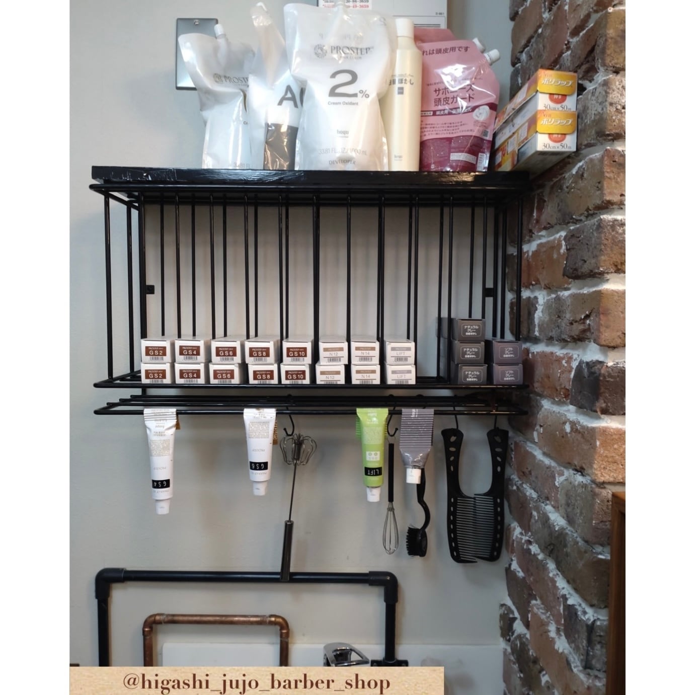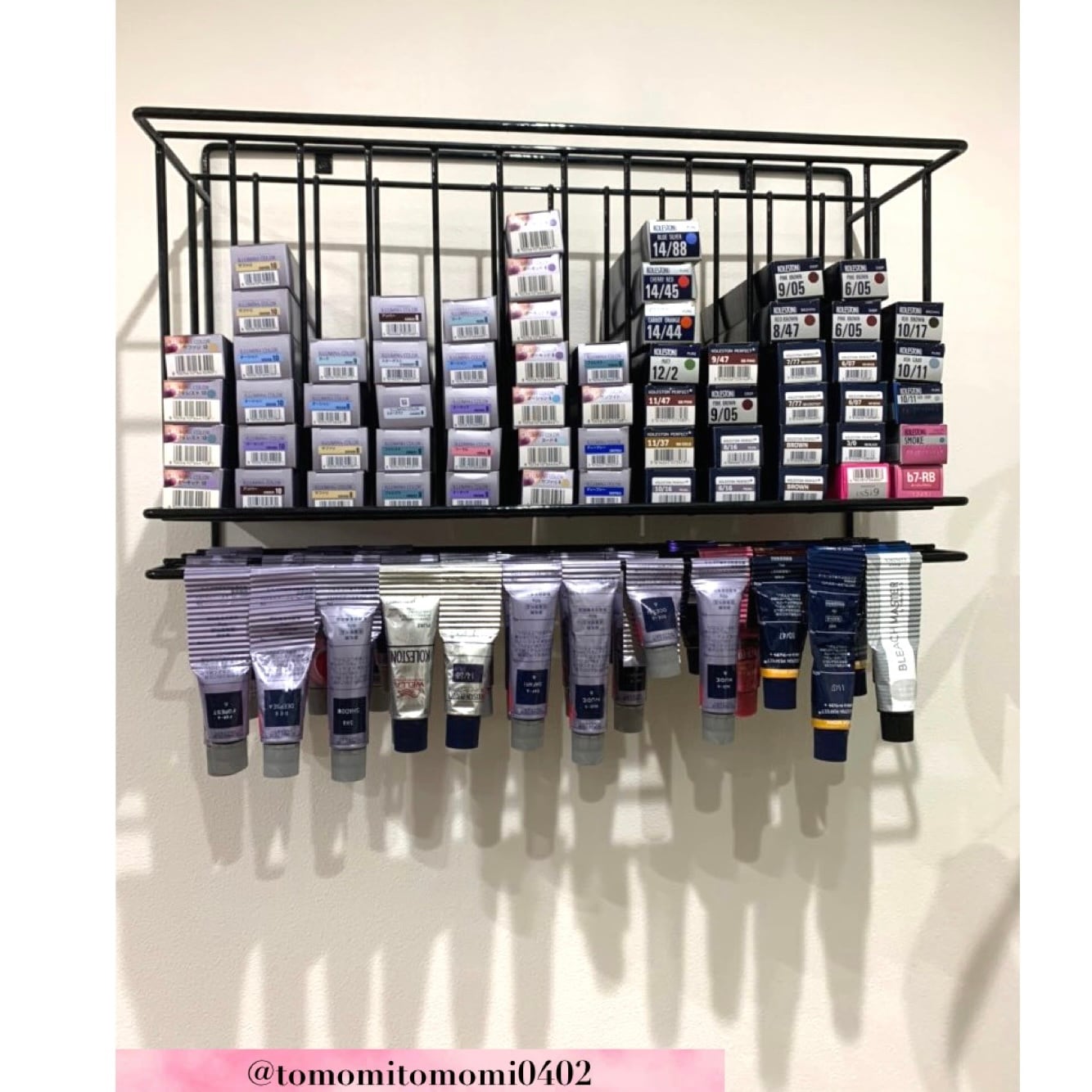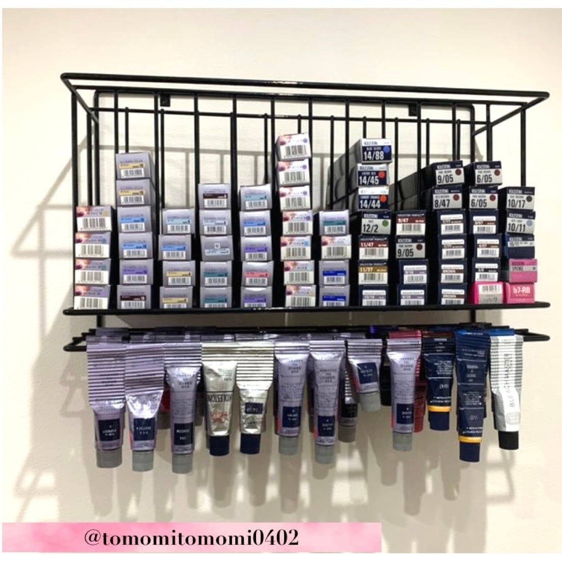 ごちゃごちゃになりやすいカラー剤の収納を解決するワイヤーラックを開発しました。